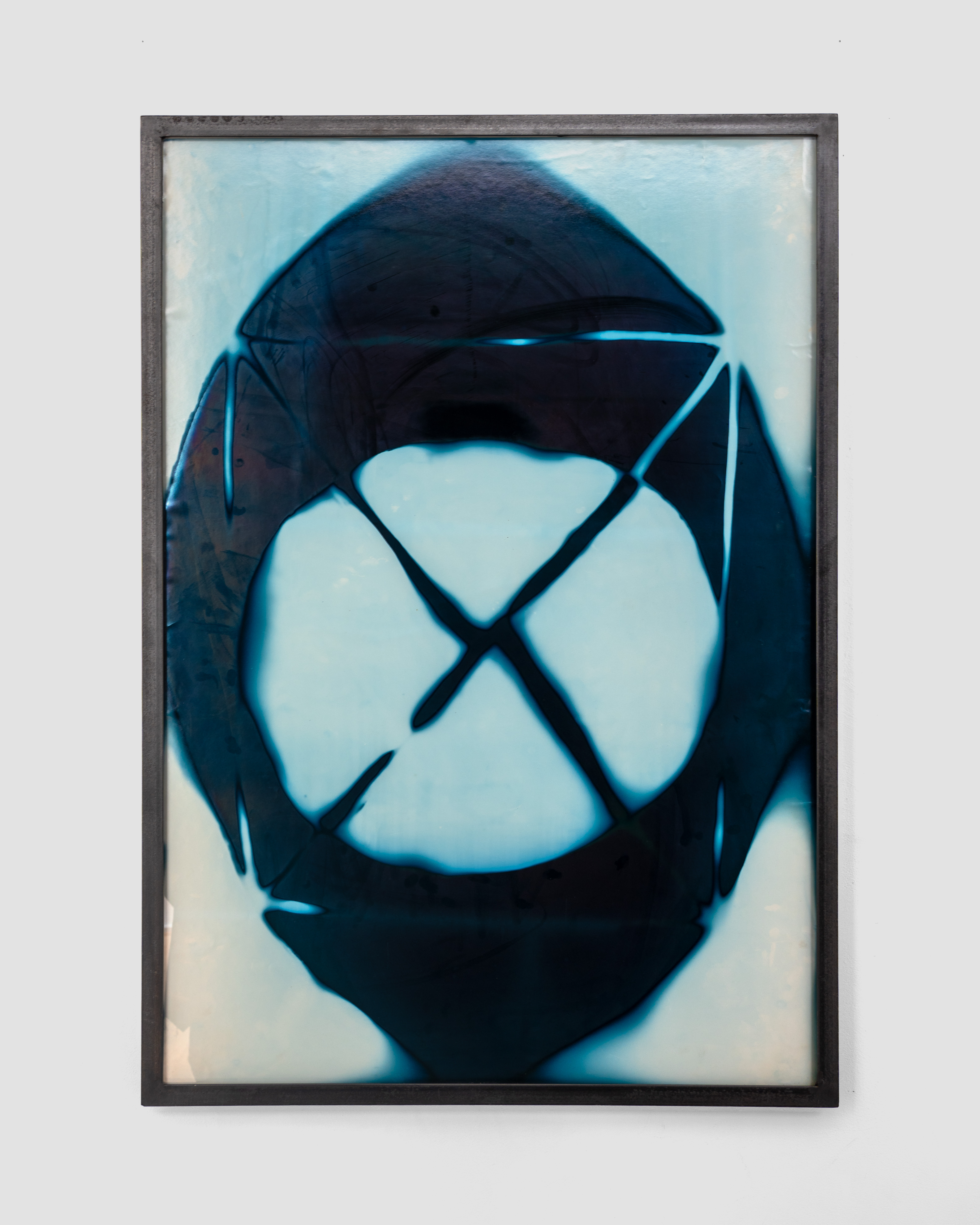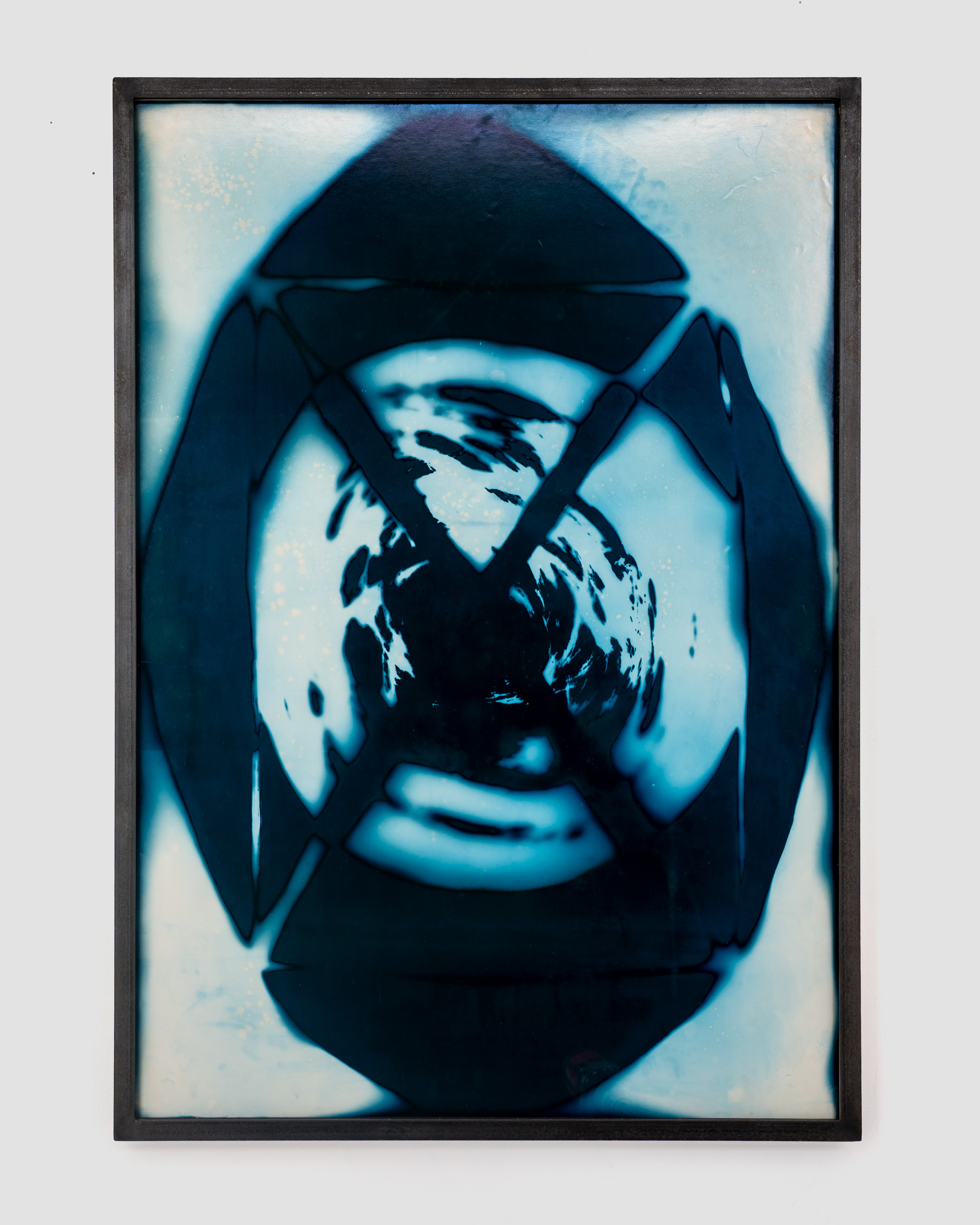 photogram, silver gelatin print, colored with ferric chloride, in steel frame